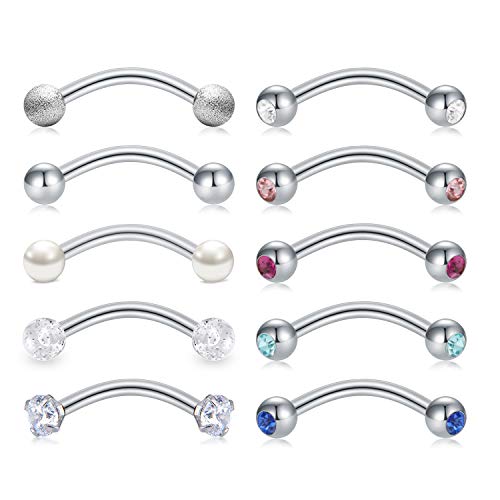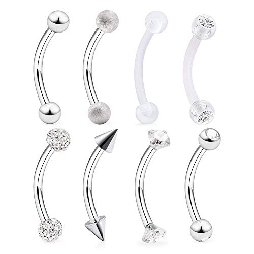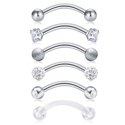 AceFun Ögonbrynsringar böjd skivstång 1,2 mm 16 g ögonbryn piercing rockörhänge för kvinnor män Daith Conch piercingörhängen, Metall