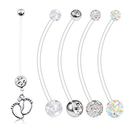 AceFun 14G graviditet navelringar kvinnor moderskap skivstång navel kroppspiercing smycken långa magringar 16/18/25/38 mm längd, 14G, 38 mm, Silver