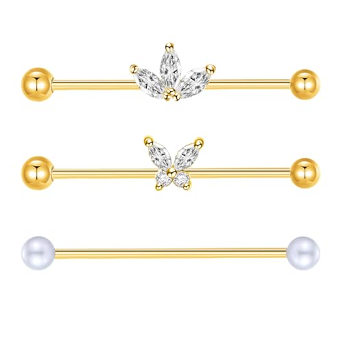 Besyvvin 3 st 38 mm industriella stänger rostfritt stål 14 g byggnadsställning skivstång silver svart guld rosa industriell piercing smycken pil fjäril, Rostfritt stål