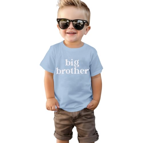 Big Brother-skjorta för baby pojke Little for Big Storebror T-shirt barn sommar kortärmad topp ledig bomull te, blå, 4-5 År