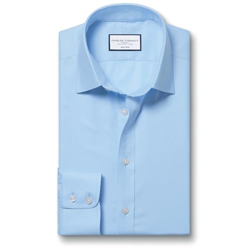 Klassisk passform himmelsblått skrynkel- och strykfritt i bomull med formell skjorta dubbel manschett av Charles Tyrwhitt