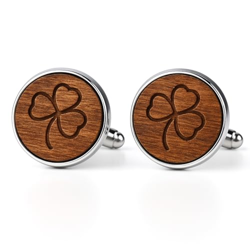 Irish Shamrock trämanschettknappar naturliga manschettknappar klassiska män smycken skjorta manschettknappar present till män, Trä, metall