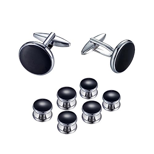 Manschettknappar för män 8 st manschettknappar och dubbar, smoking skjorta manschettknappar och knappar set för bröllop alla hjärtans dag festival födelsedag årsdag examensgåva, 20mm x 18mm, Svart,