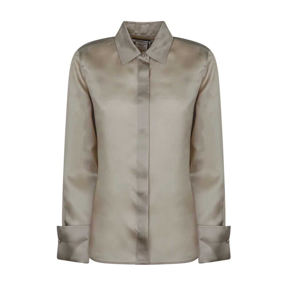 Max Mara, Blusar & Skjortor , Dam, M, Organza, Silk Olivgrön Skjorta med Manschettknappar