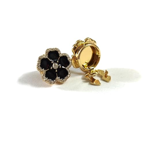 FINGERINSPIRE 6 st kvinnors strass knappskydd svarta kristall manschettknappar knappskydd 25,5 mm diameter blomform avtagbar legering knapp klämmor knappar smycken för kläder skjorta dekoration