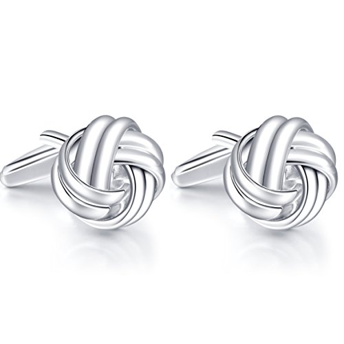 VOANZO Manschettknappar för män, 5 par herr/kvinnor sidentyg knut vridna manschettknappar set, rund för skjorta/klänning Affärsbröllopspresent (vit)