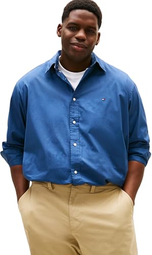 Tommy Hilfiger BT-Flex Poplin Solid RF skjorta Mw0mw43026 skjorta L/S, blå (Egeiska havet), 4XL stor storlek herr, Blå (Egeiska havet), 4XL Stor