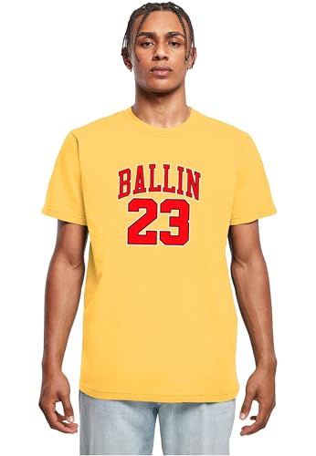 Mister Tee Unisex män T Ballin 23 te, tryck skjorta med temat basket i svart eller gult, storlek XS-XXL, Taxi gul, L