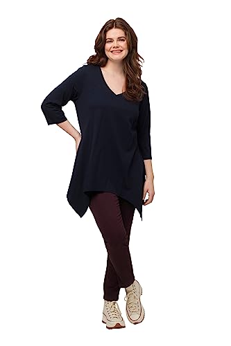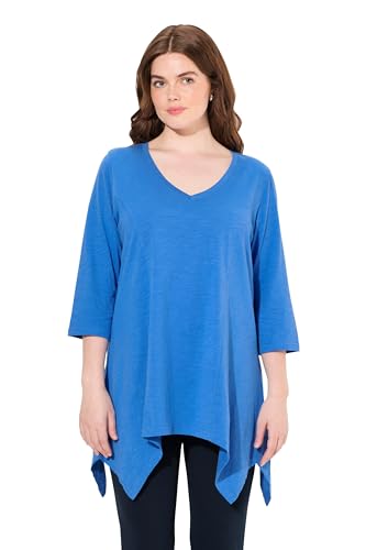 Ulla popken damer stora storlekar överdimensionerade plus size skjorta, dragkedja fåll, V-hals, 3/4-arm, ekologisk bomull 808082, marinblå, 58/60