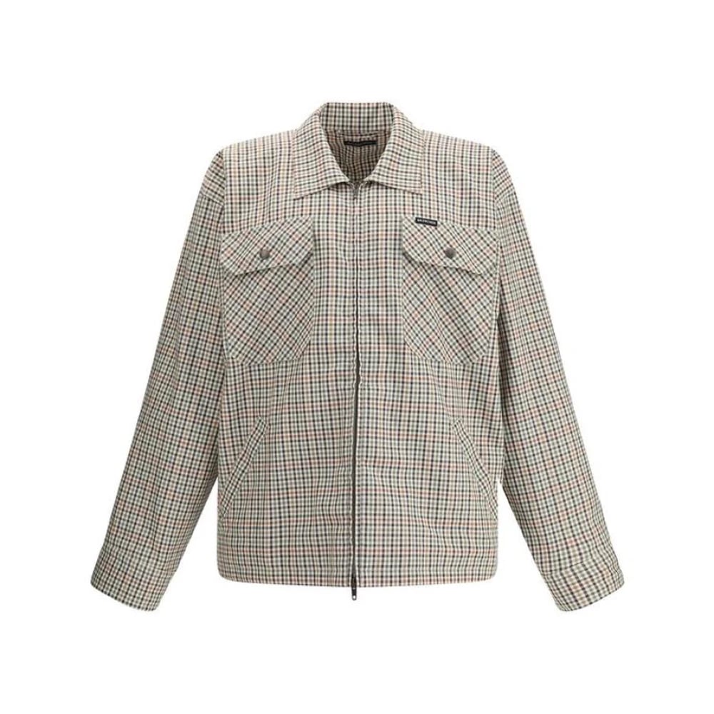 Balenciaga, Skjortor , Herr, M, Bomull, Rutig Bomull Flanell Dragkedja Skjorta med Broderad Logotyp