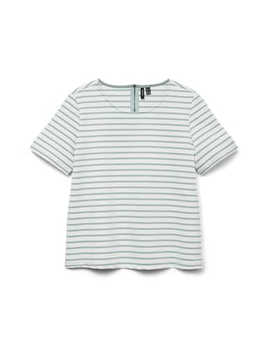 VERO MODA damer randig topp rund hals skjorta med dragkedja design stretch t-shirt topp, Snövit/ränder: grå mist, L