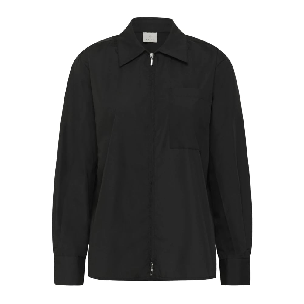 Kaffe, Blusar & Skjortor , Dam, S, Bomull, Svart Djup Skjorta med Dragkedja