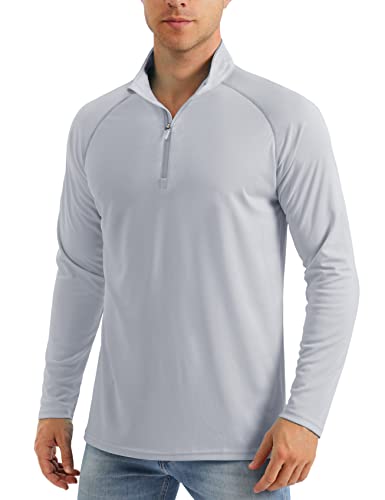 MAGCOMSEN UV-skjorta herr 1/4 dragkedja långärmad tröja Rashguard UPF 50+ sportskjorta snabbtorkande funktionell skjorta, LJUSGRÅ, M