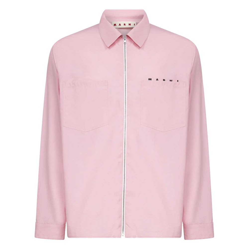 Marni, Skjortor , Herr, S, Bomull, Rosa Skjorta med Front Dragkedja