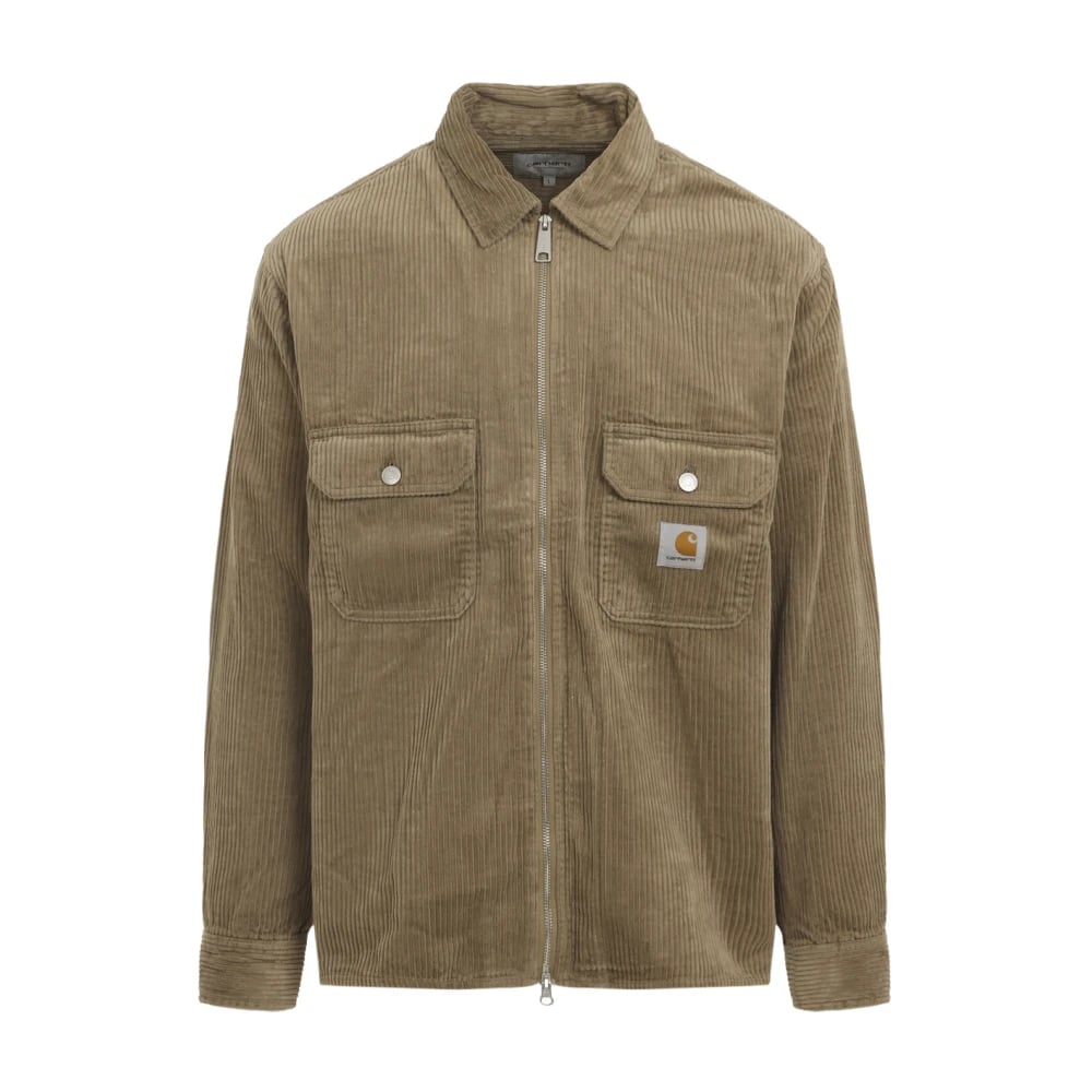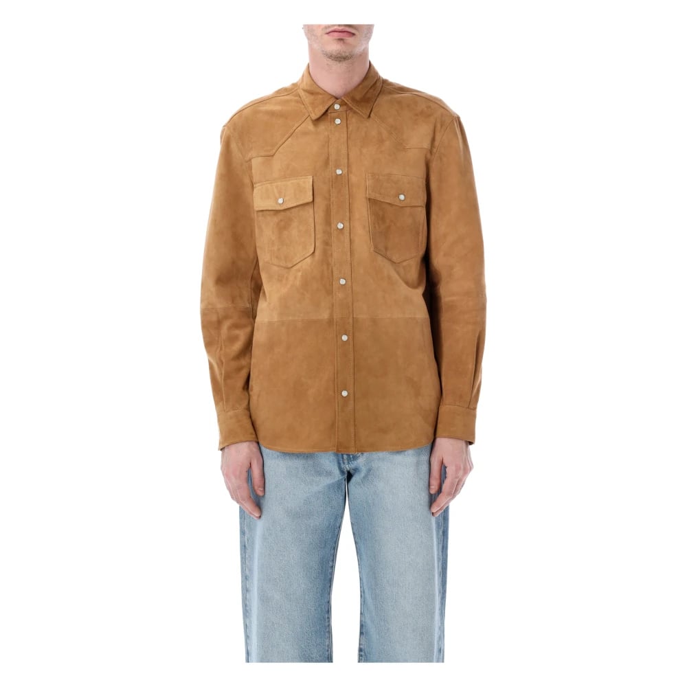 Carhartt Wip, Jackor , Herr, S, Läder, Brun läder skjortjacka med sammet design