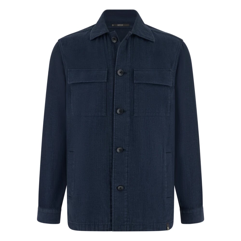 Boggi Milano, Jackor , Herr, XL, Bomull, Skjortjacka i linne och bomull med fiskbensmönster