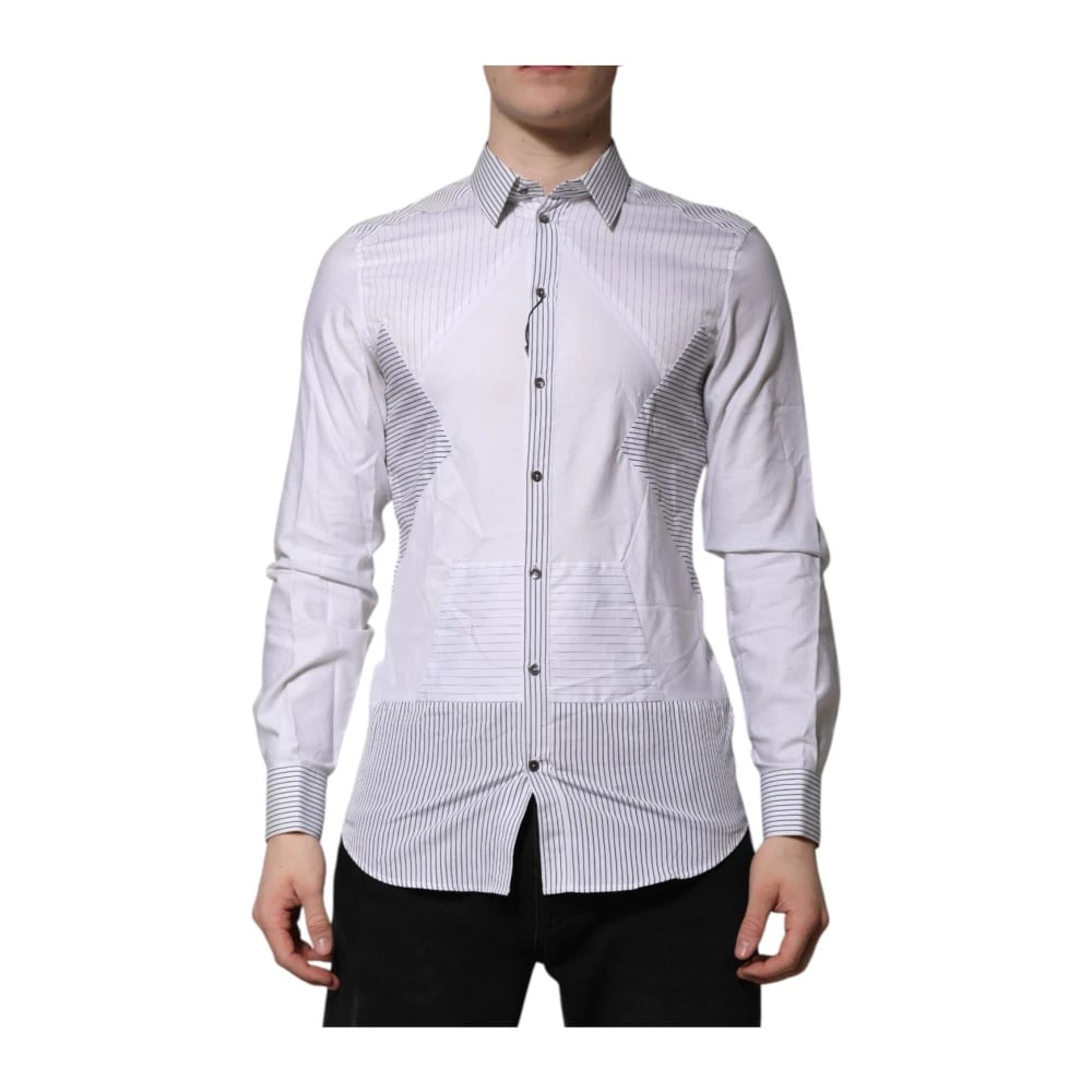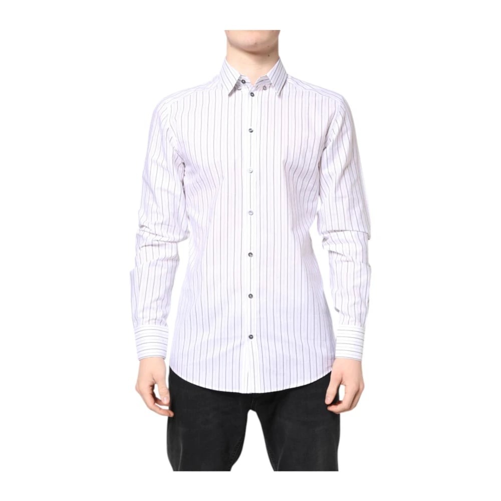 Dolce & Gabbana, Skjortor , Herr, M, Bomull, Randig Slim Fit Skjortklänning