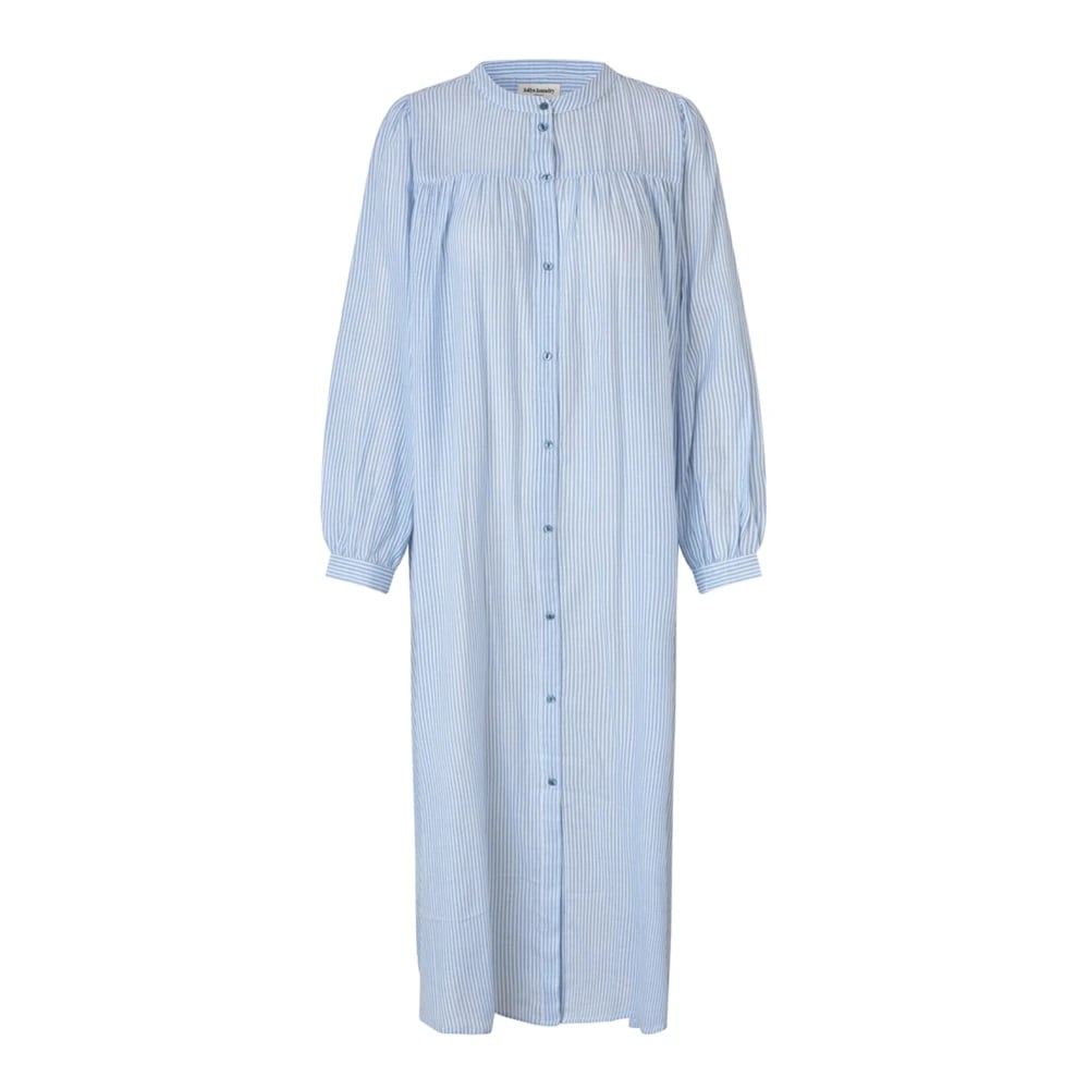 Lollys Laundry, Klänningar , Dam, L, Bomull, Randig Midi Skjortklänning med Puffärmar