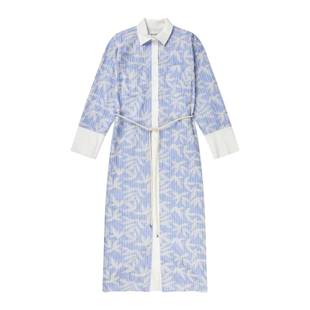 Munthe, Klänningar , Dam, M, Bomull, Randig Skjortklänning med Bladbroderi
