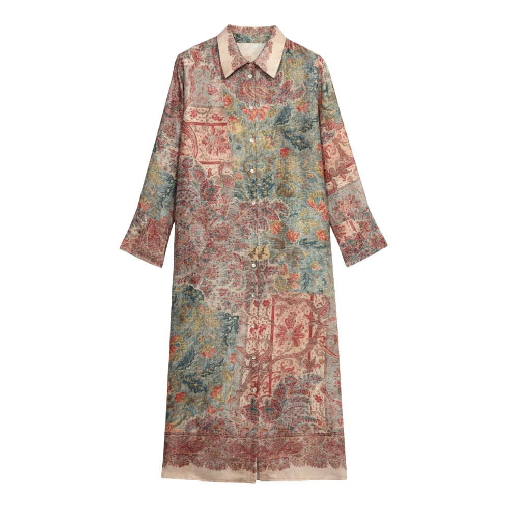 Oltre, Klänningar , Dam, S, Polyester, Mönstrad skjortklänning i följsam satin