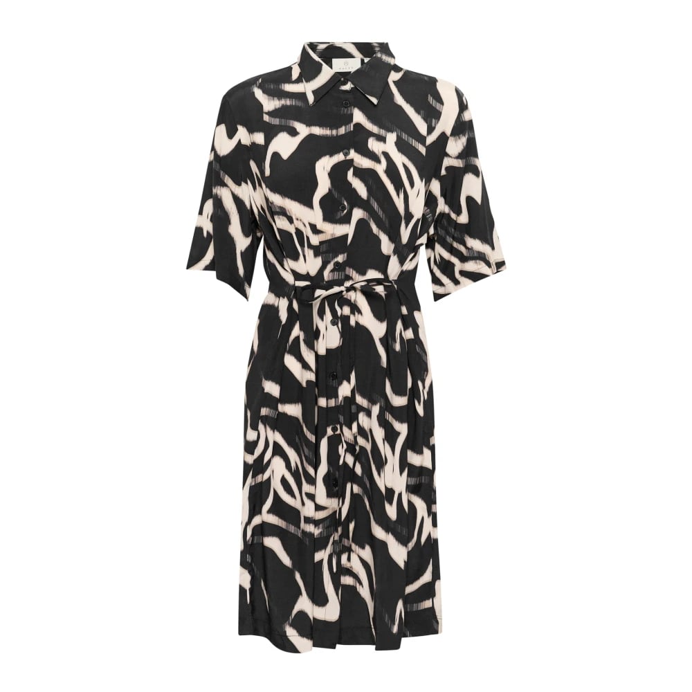 Kaffe, Klänningar , Dam, 3Xl, Feminin Skjortklänning Svart/Natur Linjer