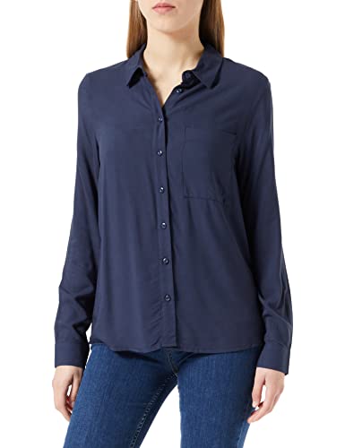 ICHI IHMAIN SH dam lång blus långärmad basblus av ren viskos hållbar certifierad EcoVero viskos skjortkrage normal passform, Total förmörkelse (194010), 38