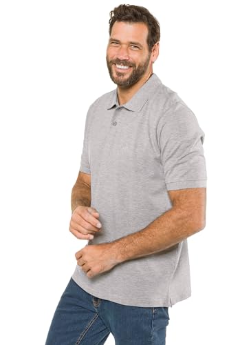 JP 1880 Pikétröja för män, topp, knapprad, skjortkrage, pikétröja, Grå melange, 7XL