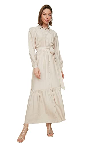Trendyol Kvinnors skjortkrage taptop klänning klänning, beige, 36
