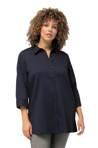 Ulla popken dam stora storlekar överdimensionerade plus size blus, bubbelkvalitet, skjortkrage, 3/4-ärm 797446, marinblå, 66/68 SE