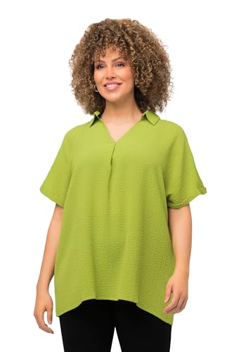 Ulla popkar, kvinnor, stora storlekar, blus, struktur, A-linje, skjortkrage, halvärm, Maigrün, 50/52