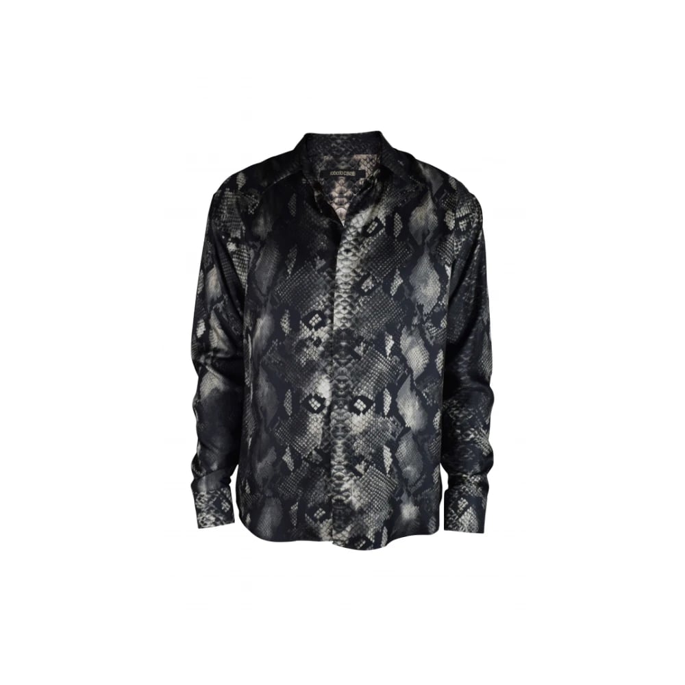Roberto Cavalli, Skjortor , Herr, S, Rock Python-Print Silk Shirt