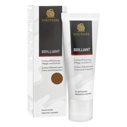 SOLITAIRE Brilliant skokräm, färg: mellanbrun, med färguppdatering för slätt läder och intensiv vård och enkel impregnering för skor, väskor, kläder, med svampapplicering, 75 ml