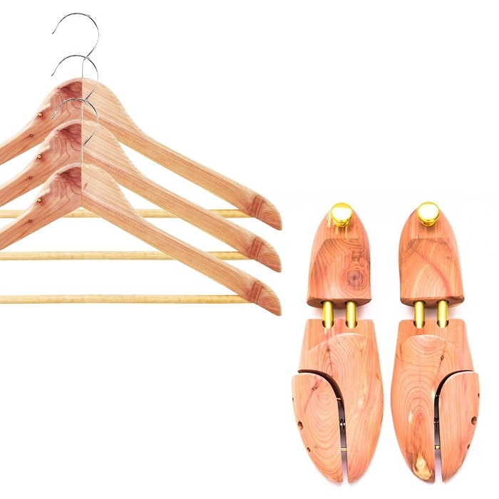 Paket med 3 skjortgalgar och skoblock i cederträ