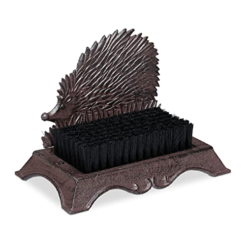 Relaxdays Skoborste, gjutjärn, igelkott design, hårda kokosborst, utomhus, antika skoavdragare, brun