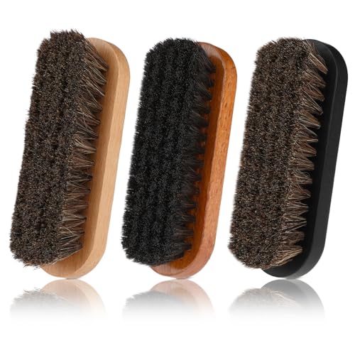 Amabro 3 st skoborste med hästhår, skokräm borstar läder glans borste mockaskor rengöringsborstar trähandtag för stövlar skor bilsäten soffor väskor sneakers