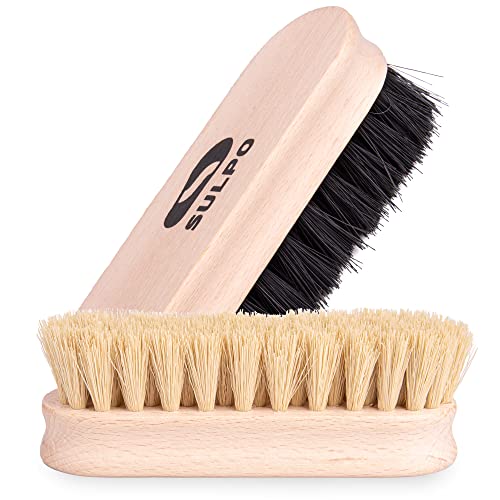 SULPO Skoborste – längd 12 centimeter – skorengöringsset – skorengöringsborste skoborstar läderborste – smutsborste mjuka borst svart och naturlig polerborste – 2 stycken set – skovård