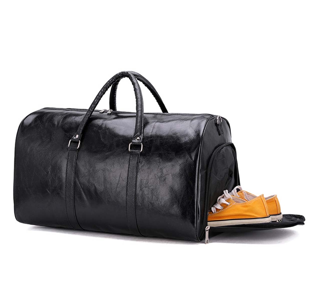 Utfällbar resebag i PU-läder med skofack och justerbar axelrem - Svart