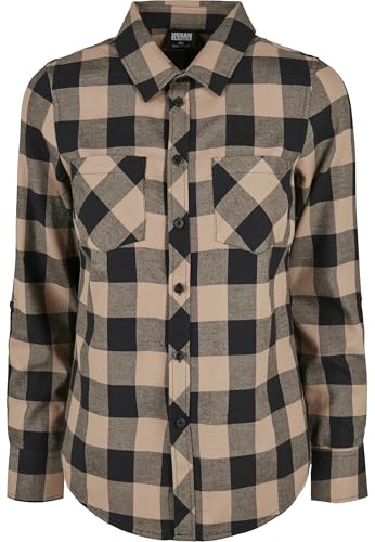 Urban Classics Damskjorta dam rutig flanellskjorta, dam skogshuggarskjorta, långärmad, finns i många färger, storlekar XS – 5XL, Svart/mjuk taupe, XL