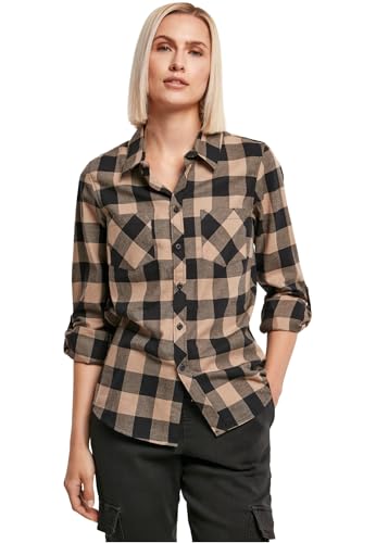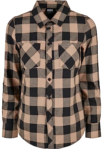 Urban Classics Damskjorta dam rutig flanellskjorta, dam skogshuggarskjorta, långärmad, finns i många färger, storlekar XS – 5XL, Svart/mjuk taupe, M