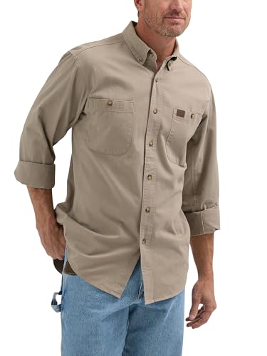 Wrangler Riggs Arbetskläder för män, skogshuggarskjorta i twill med långa ärmar, arbetsskjorta, Khaki, M