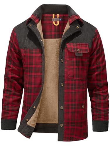 Mr.Stream Herr Flanellskjorta fleecefoder vinterjacka skogshuggarskjorta arbetsskjorta Jacket 3251 Red L