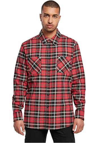 Urban Classics Herr skogshuggarskjorta rutig roots flanellskjorta med bröstfickor, långärmad med knapprad, många färger, storlek XS till 5XL, Röd/svart, S