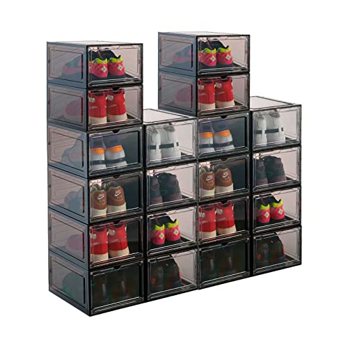 BUZIFU 20-pack skoförvaringslådor genomskinliga klara plast stapelbara och vikbara lådor skohållare prydlig behållare organiserare för män och damer