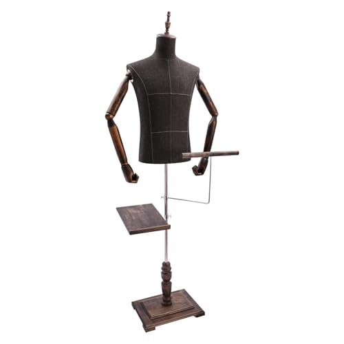 Skyltdocka, herr, skräddardocka, justerbar höjd, sydocka, skräddardockor, byst för män, med byxstativ och skohållare för att visa och sy (brun) (Brown)