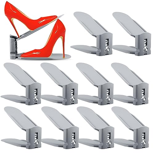 FAMKEEP Set med 10 st Skoorganisator, löstagbart skoställ, justerbar skohållare, lämplig för kvinnor och män, sparar utrymme (grå)