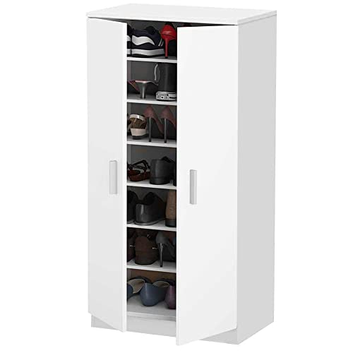 BAKAJI Skoställ Skoskåp Entré Hem med 7 Hyllor Skohållare Stängning 2 Dörrar Träram Skåp Hjälpskåp Multipurpose Storlek 108 x 55 x 36 cm (Vit)