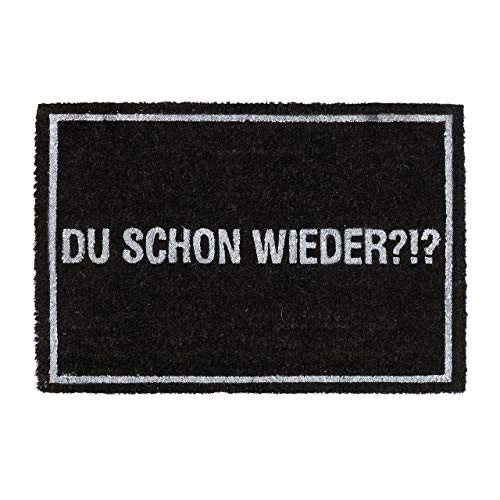 Relaxdays dörrmatta Kokos Du igen, halkfri skohållare, inomhus och utomhus, kokomatta 40 x 60 cm, svart/vit, 1 styck