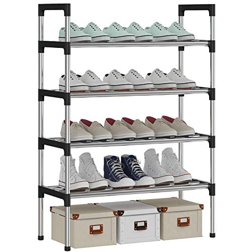 AcornFort® S-5 skohylla med 4 nivåer, skoställ, skohållare, mycket robust design, för 12 par skor, 56 x 30 x 80 cm, skohylla för entré, sovrum (silver)