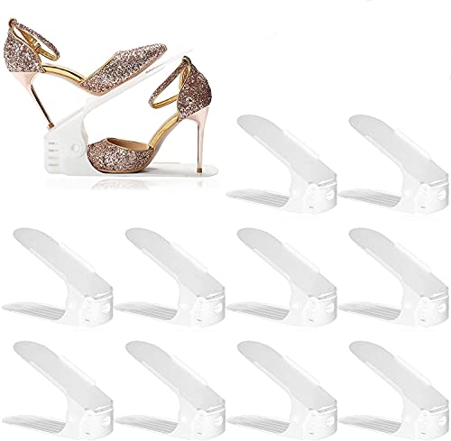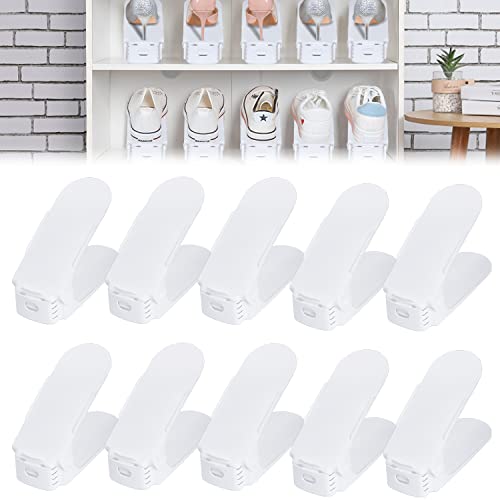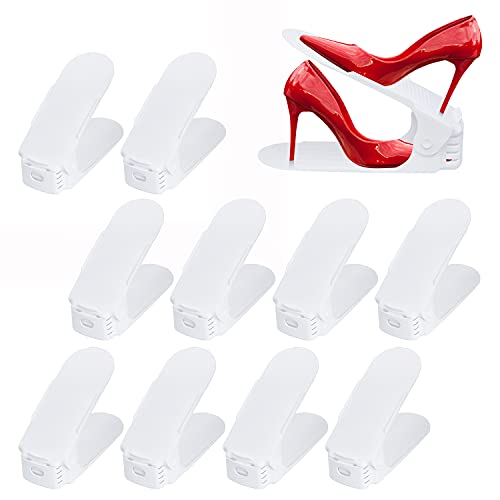 UrMsun Set med 10 st justerbara skoorganisatörer med slitsar staplare skohållare för platsbesparande skor (vit)