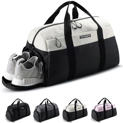 Fitgriff Gymväska för män och kvinnor V2 - Sportväska med skohållare och fuktig ficka för resor, sport, fitness, pool - Duffelväska, Svart/vit, 56 x 30 x 32 cm (Medium), Sportig